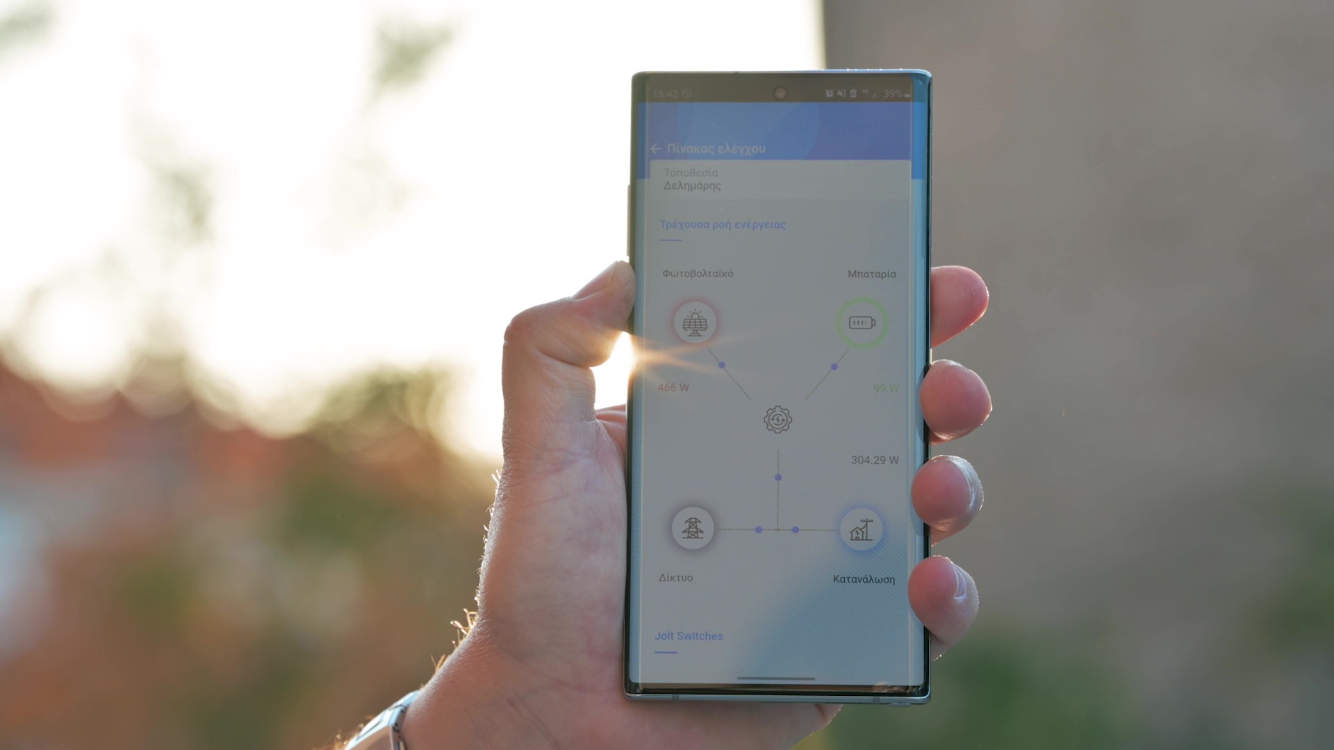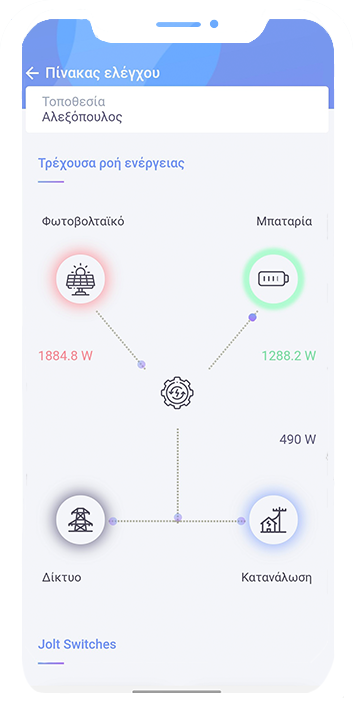 Με το Jolt μπορείς επίσης να παρακολουθείς την ενέργεια που αγοράζεις από τον παροχό σου, την ενέργεια που παράγεις μέσω φωτοβολταϊκών και την ενέργεια που αποθηκεύεται στην μπαταρία σου.