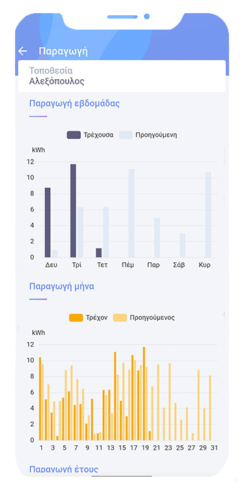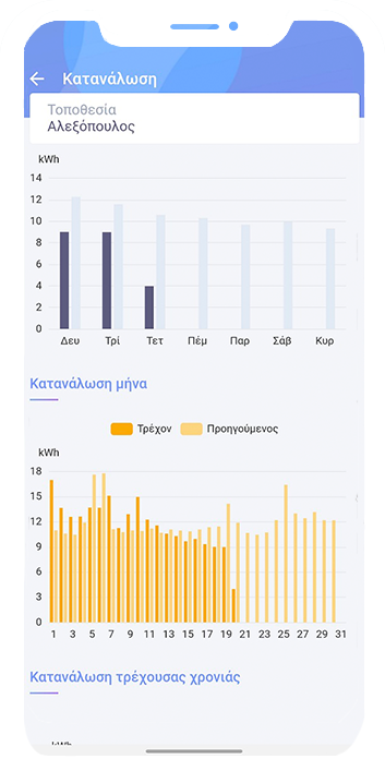 Έχεις τον πλήρη έλεγχο του λογαριασμού της ηλεκτρικής ενέργειας και της ενεργειακής κατάστασης του σπιτιού και της επιχείρησής σου, αλλά και την δυνατότητα να προγραμματίζεις πότε και πώς θα χρησιμοποιείς την ηλεκτρική σου ενέργεια, αποφεύγοντας περιττή κατανάλωση και κόστος. Τα παρελθοντικά δεδομένα κατανάλωσης και παραγωγής σου μπορούν να παρακολουθούνται ανά πάσα στιγμή, καθώς και ολόκληρο το ιστορικό των δράσεων, επιτυγχάνοντας καλύτερο έλεγχο και εξυπνότερες αποφάσεις.
