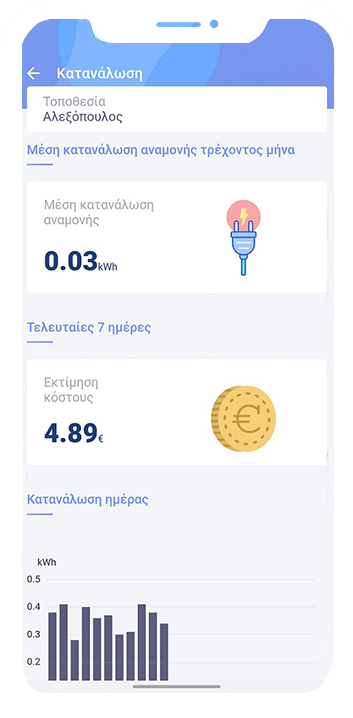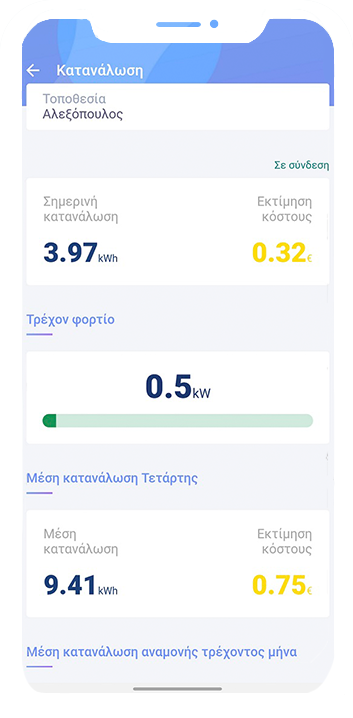 Κατέβασε την εφαρμογή και συνδέσου εύκολα και γρήγορα. Δημιούργησε τις τοποθεσίες που θέλεις (π.χ. σπίτι, επιχείρηση) και πάρε τον έλεγχο! Αυτό σημαίνει ότι μπορείς να παρακολουθείς, να ρυθμίζεις και να θέτεις όρια στην κατανάλωση της ενέργειας σου και στο ημερήσιο κόστος σου. Θα έχεις σε πραγματικό χρόνο πρόσβαση στην ενεργειακή σου κατάσταση και την δυνατότητα λήψης αποφάσεων και ελέγχου εντολών βάσει μιας πιο αποτελεσματικής διαχείρισης ενέργειας και μείωσης κόστους.